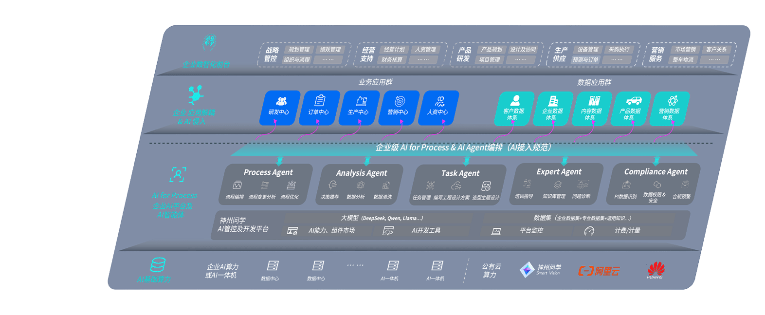 端到端的一站式AI工作空间深度融合了从企业战略规划到日常经营的全流程业务板块,,,,定向解决车企内部领域多、、部门多、、、、链条长、、场景碎片化等难题,,支持车企快速构建以AI为核心的生产力写作体系,,,实现任务执行与AI能力的无缝集成与交互